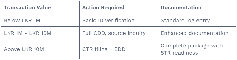 - Customer makes 5 transactions of LKR 1.9M within 2 hours